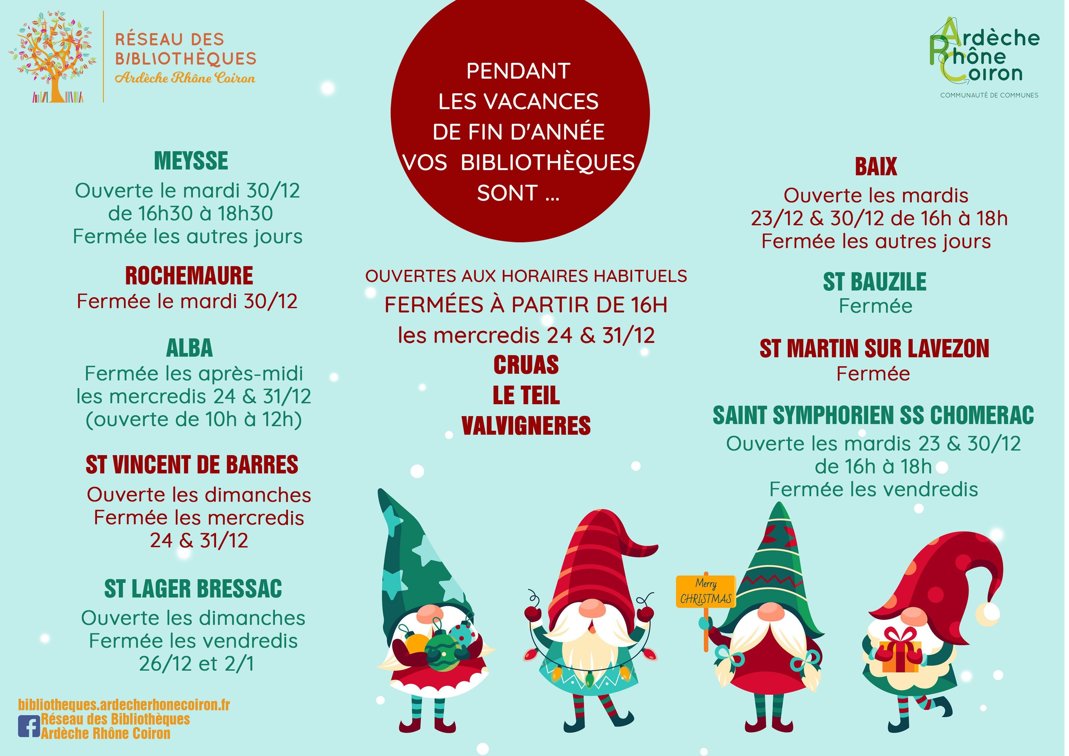Toutes les bibliothèques sont fermées les jeudi 25/12 et jeudi 01/01/26.